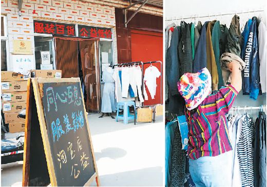 5月的北京,午后日頭正晒。在通州區尹各庄村一個名叫“同心互惠”的商店裡,前來挑選衣服鞋帽的顧客不少。