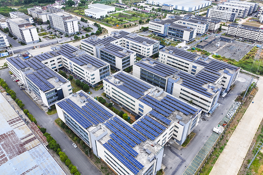 2025年10月21日,江西省撫州市南豐縣黃金工業園區,一排排光伏發電板鋪展在廠房屋頂,為企業輸送清潔電能。