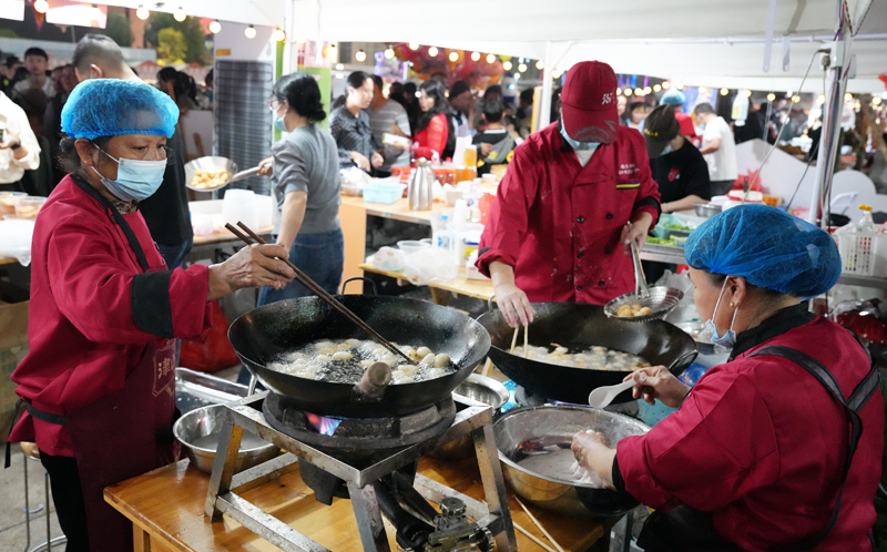 美食嘉年華現場,工作人員現場烹制美食。毛飄洋攝