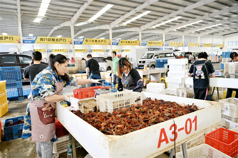 “每天30萬公斤小龍蝦從這裡發往全國!”每年龍蝦上市時節,在永修縣小龍蝦交易市場,冷鏈車往來穿梭,分揀線上的小龍蝦經過清洗、打包,將端上北上廣深的餐桌。