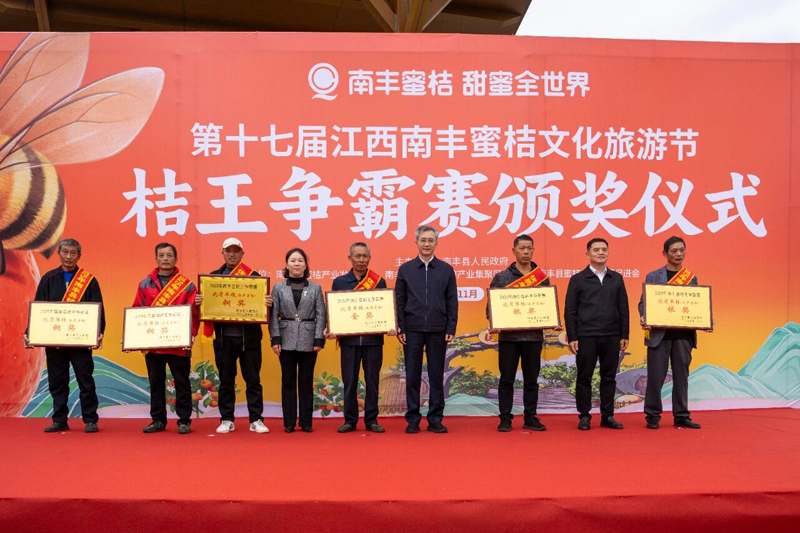人民網南豐11月16日電 (記者時雨)近日,2025年江西省南豐桔王爭霸賽經過一段時間的初賽和決賽,在省、市、縣有關專家的認真評定后,最終評選出優質南豐蜜桔單株、南豐蜜廣單株各24個,2025年“桔王”也由此正式產生。