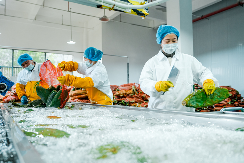 生產車間內,工人正在清洗篩選仙人掌。彭琛攝