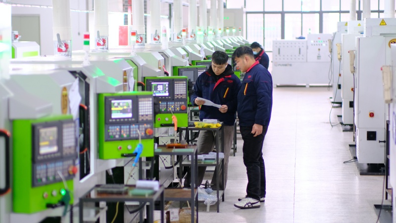工人們在智能化車間核對產品規格、參數。呂春華攝