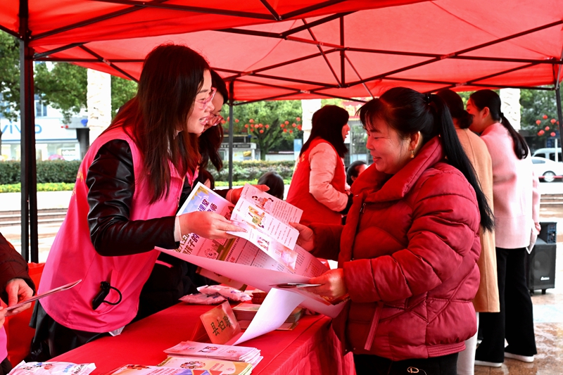 3月4日,江西省會昌縣舉行2026年法治“護苗”“三八”維權周普法宣傳活動。活動現場設置咨詢台、擺放宣傳展板、發放宣傳資料,向過往群眾普及法律法規。