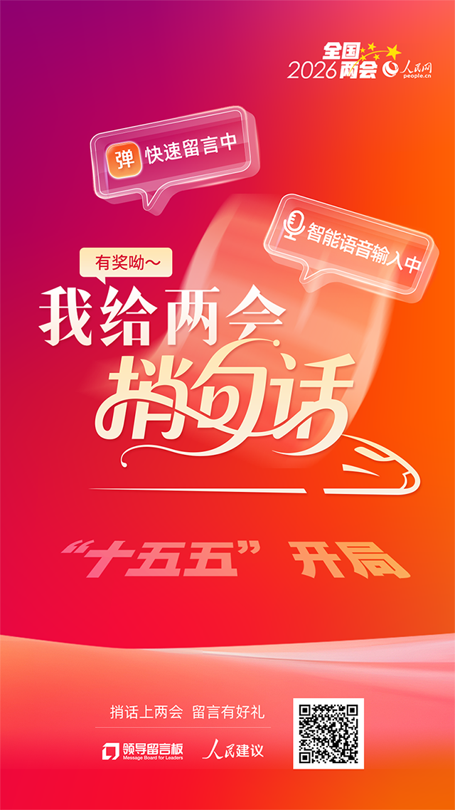 人民網2026年“我給兩會捎句話”建言征集活動正在進行,各界群眾可通過活動專題、人民網“領導留言板”小程序、“人民網+”客戶端等渠道參與建言。