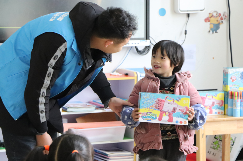 志愿者们与孩子们一起做游戏、唱儿歌。