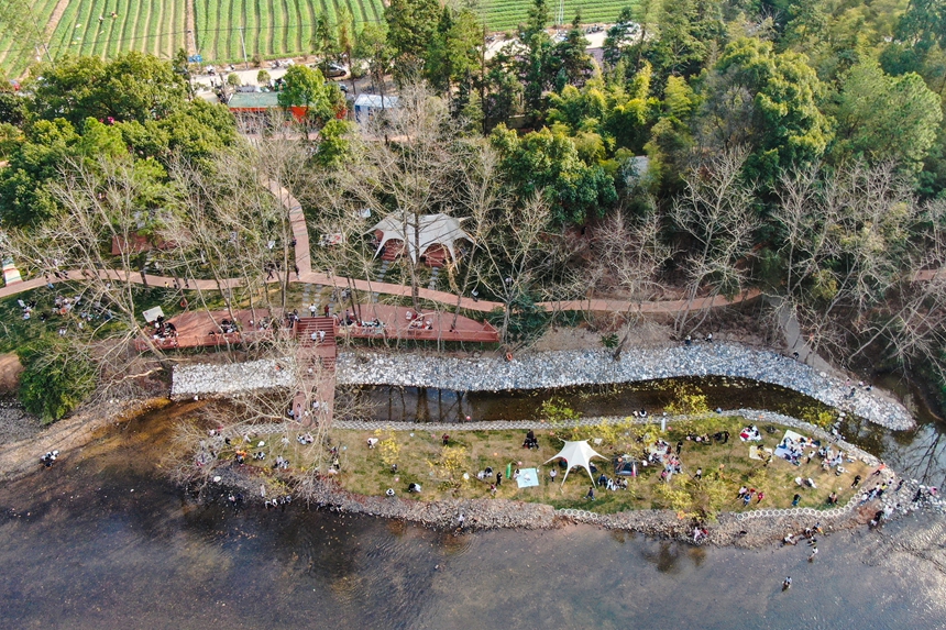 2026年1月17日,江西省赣州市会昌县庄埠乡寨富村露营地草木含韵、景致宜人。游客们三五成群分散其间,或漫步赏景、用镜头记录田园美景,或闲坐畅谈、与自然亲密相拥,乐享周末美好时光。