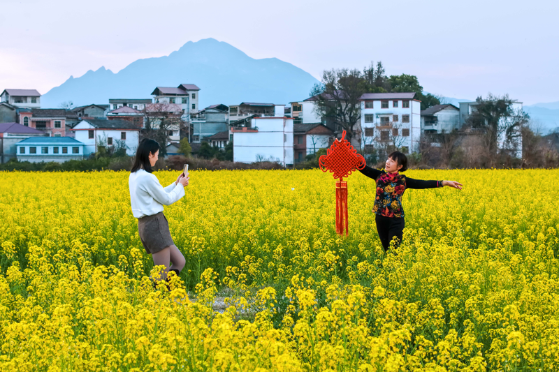 连日来,随着气温回暖,江西省抚州市南丰县琴城镇水北村的千亩油菜花迎春绽放,金黄的花海与青山绿水、村庄农舍相映成趣,构成一幅美不胜收的田园画卷。灿烂春光中,八方游客慕名而来,共赴这场金色之约。(彭琛摄影报道)