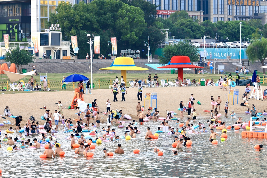 “两滩七湾”天然泳场人声鼎沸,