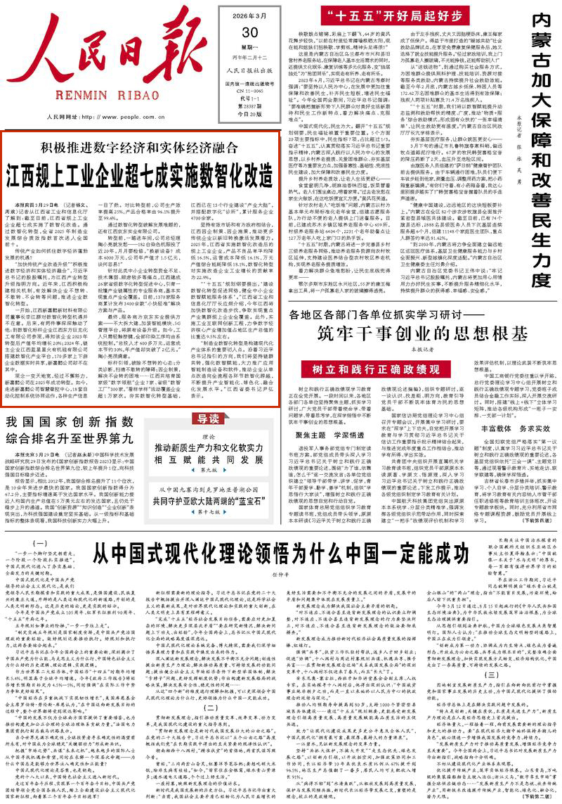 本报南昌3月29日电 (记者杨义、周欢)记者从江西省工业和信息化厅了解到:截至目前,江西省规上工业企业超七成实施了数智化改造。通过数智化转型,全省2025年制造业发展综合质效指数首次进入全国前十。