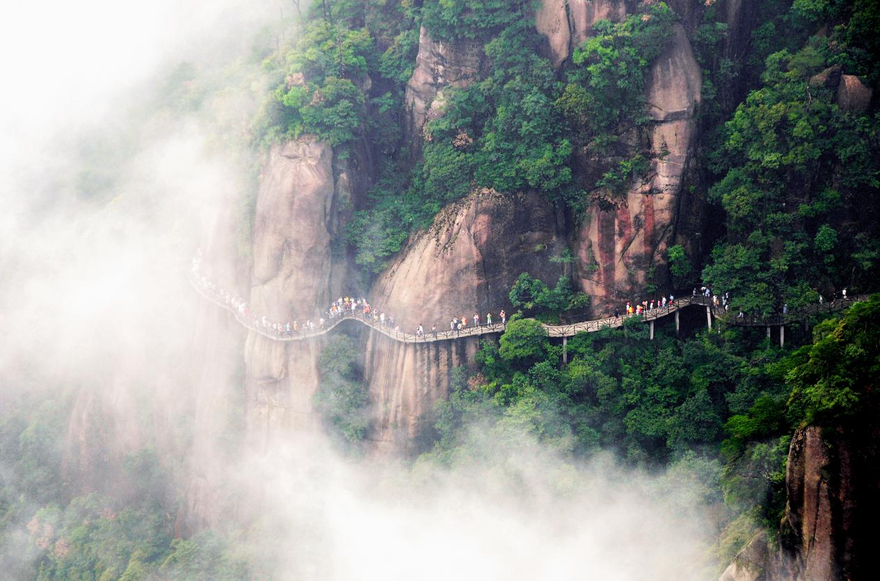 三清山,悬崖上的高空栈道如入仙境。三清山景区供图